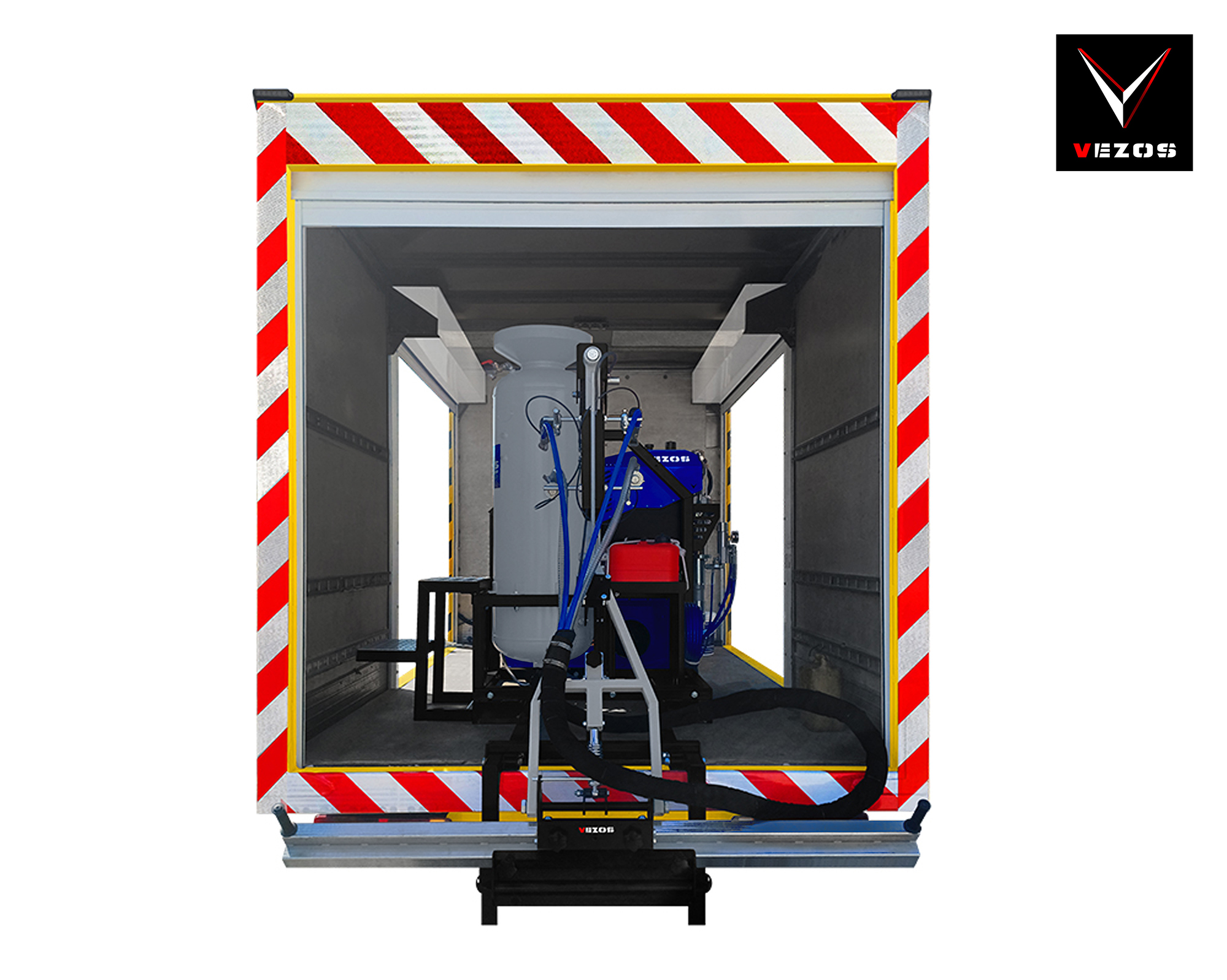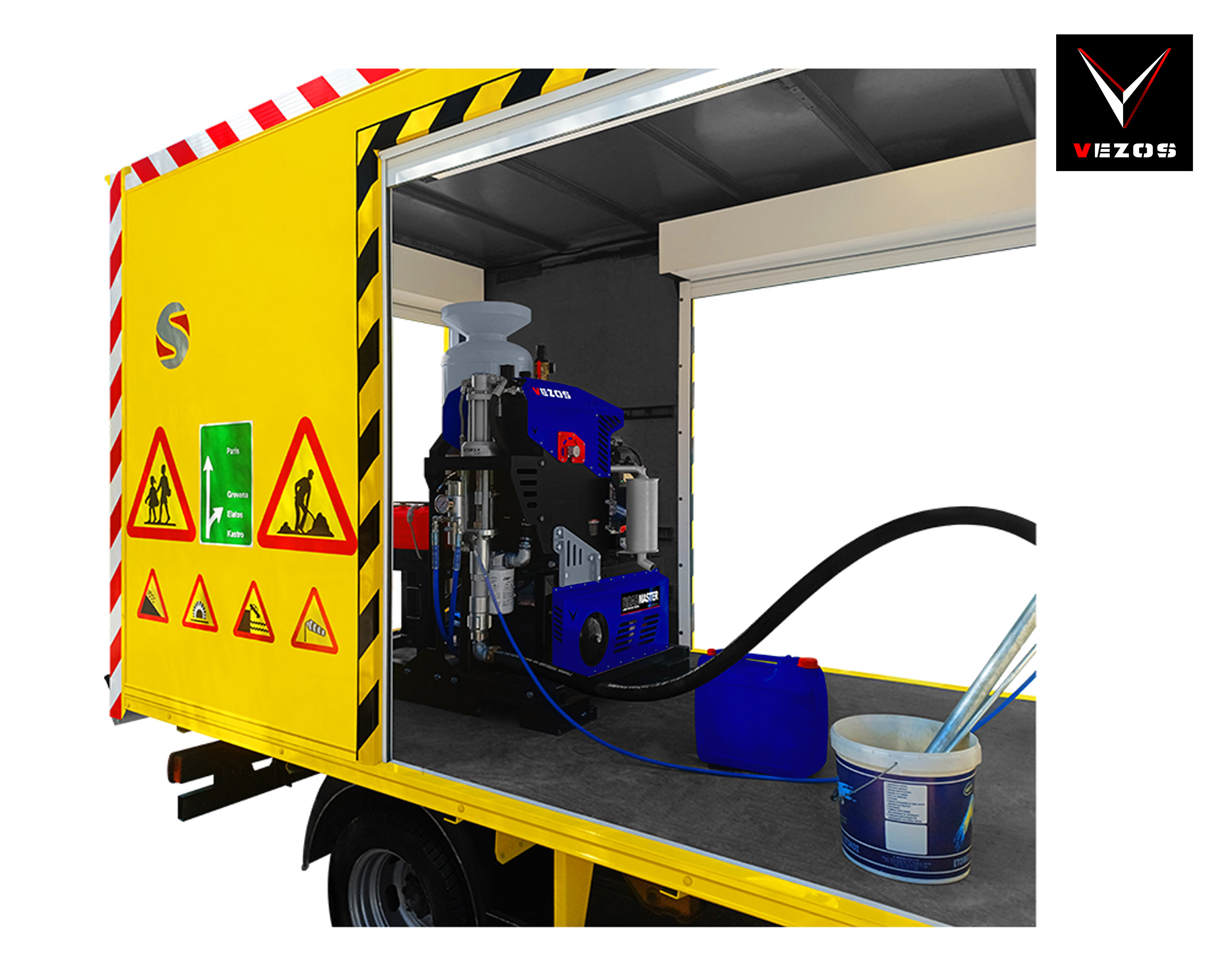 Το VEZOS ROADMASTER B5.0 είναι ένα σύστημα διαγράμμισης υψηλής απόδοσης, τοποθετούμενο σε φορτηγό, σχεδιασμένο για εργολάβους που δραστηριοποιούνται σε αυτοκινητόδρομους, δημοτικούς δρόμους και έργα διαγράμμισης μεγάλης κλίμακας. Κατασκευασμένο πάνω σε πλήρως αναδιπλούμενο παλετοποιημένο πλαίσιο, διαθέτει αναδιπλούμενο βραχίονα, αυτόματα πιστόλια βαφής airless, σύστημα υαλοσφαιριδίων υπό πίεση και έλεγχο από την καμπίνα μέσω ενός συστήματος παρακολούθησης SKIPLINE. Με μία υδραυλική αντλία βαφής HYDREX και αξιόπιστη μηχανή HONDA, το ROADMASTER B5 προσφέρει εφαρμογές με ακρίβεια, εύκολη λειτουργία από έναν χειριστή και επαγγελματική απόδοση για απαιτητικές εργασίες διαγράμμισης.