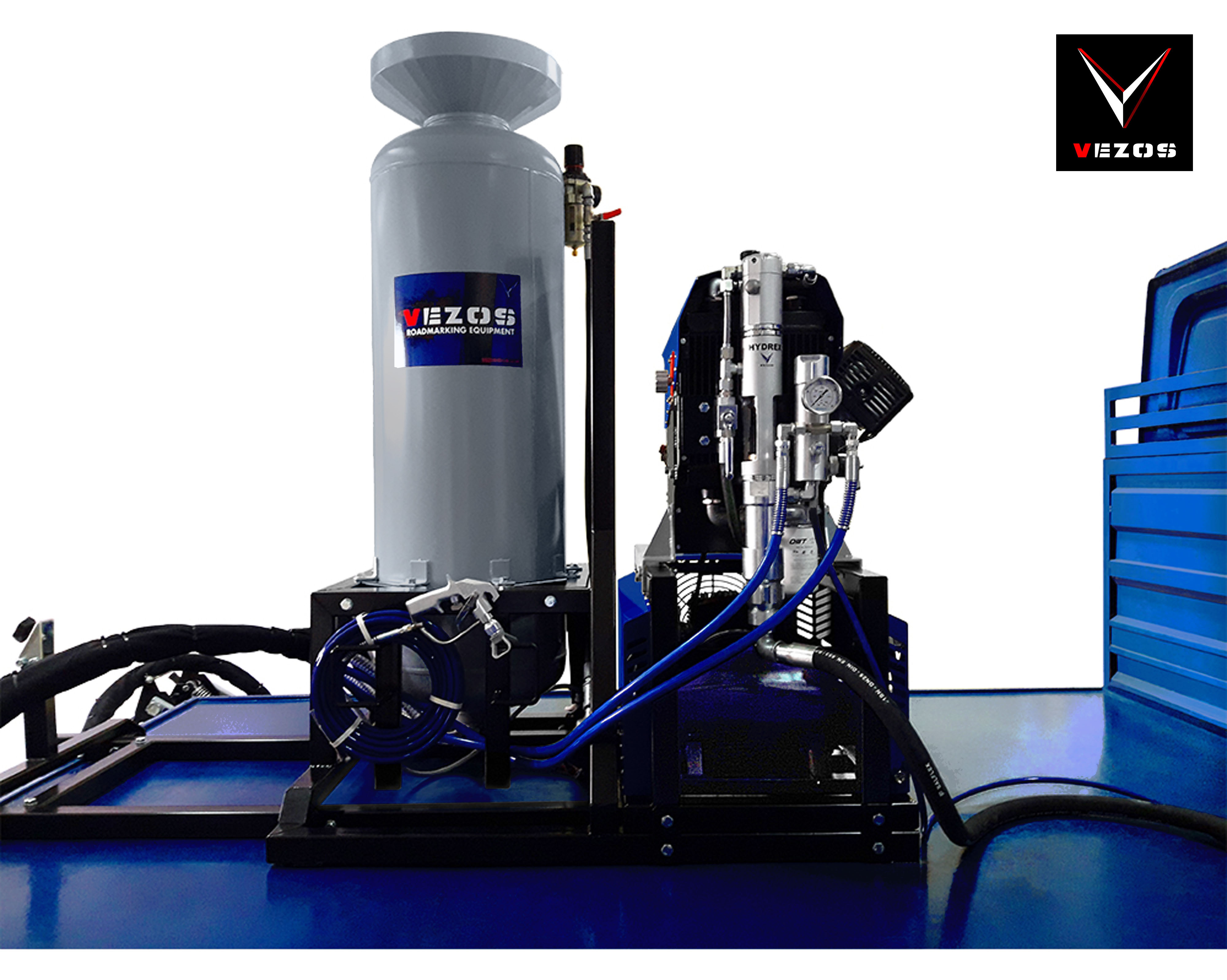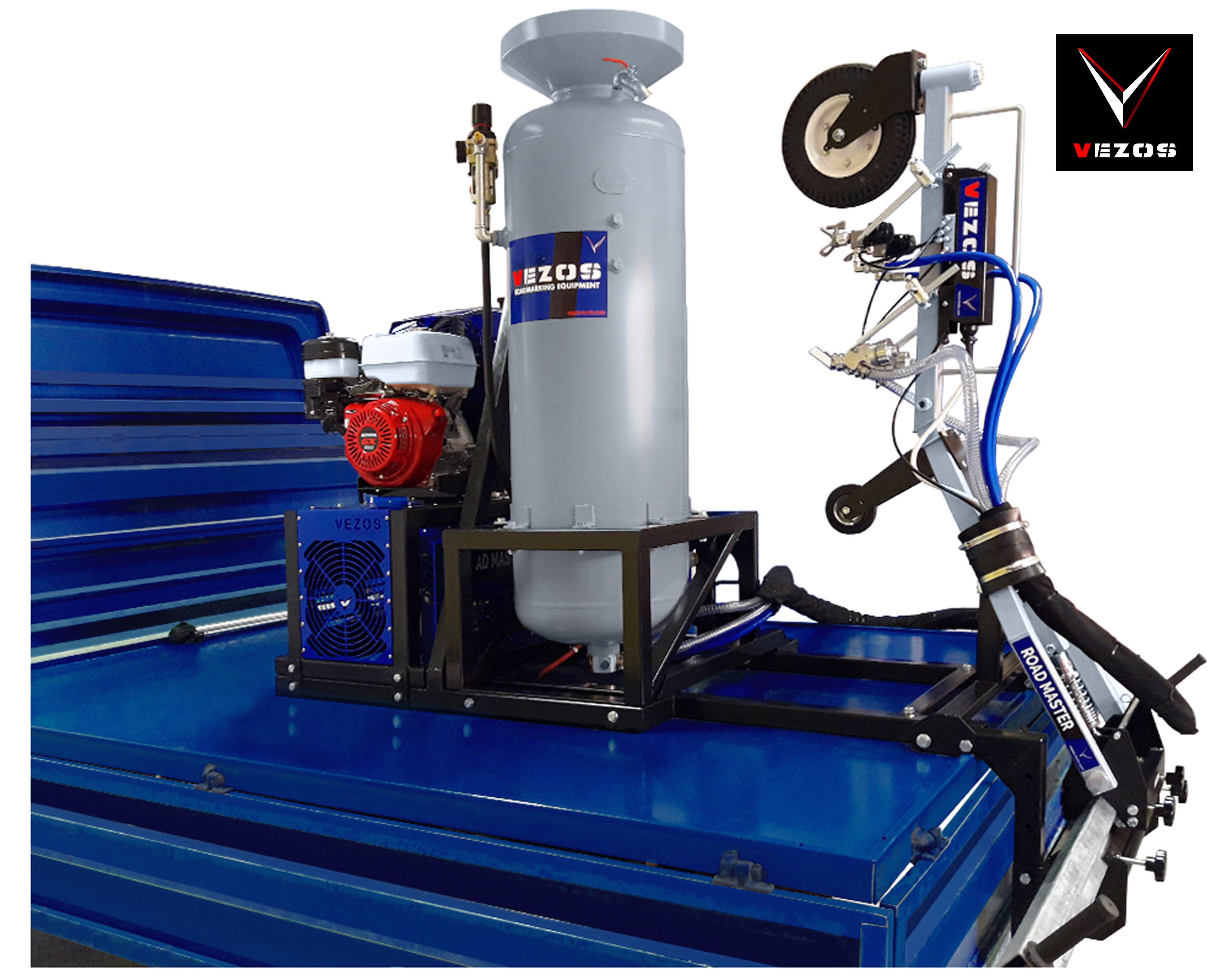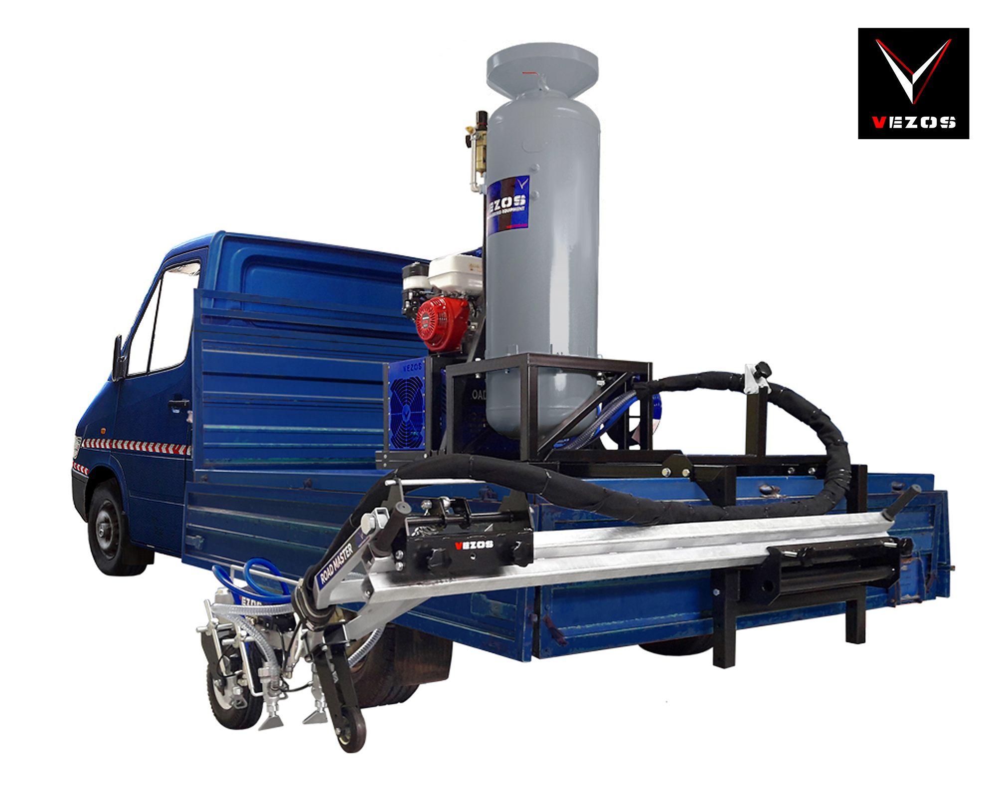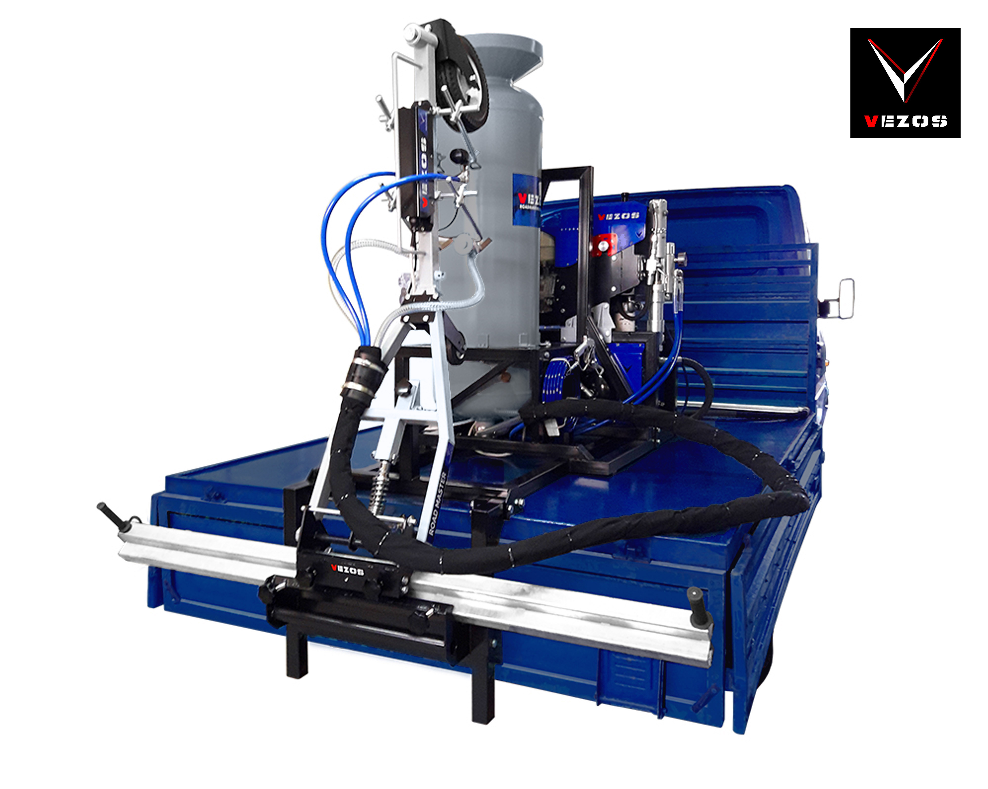 Το VEZOS ROADMASTER A2.5 είναι ένα συμπαγές και αξιόπιστο σύστημα διαγράμμισης τοποθετούμενο σε κάθε τύπο φορτηγού. Κατασκευασμένο σε πλήρως αναδιπλούμενο, παλετοποιημένο σύστημα, διαθέτει αναδιπλούμενο βραχίονα, χειροκίνητα ή αυτόματα πιστόλια βαφής, σύστημα υαλοσφαιριδίων υπό πίεση και προηγμένες επιλογές ελέγχου. Με υδραυλική αντλία βαφής HYDREX και αξιόπιστο κινητήρα HONDA, το ROADMASTER A2.5 προσφέρει σταθερή απόδοση, ευελιξία και δυνατότητες αναβάθμισης για εργολάβους που ξεκινούν ή επεκτείνουν τις εργασίες διαγράμμισής τους.